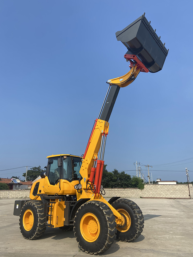 裝載部分,標配2米寬鏟斗,斗容1立方,額定裝載量2500,最大卸載高度2742,最大卸載距離1062,前方加裝快換接頭,滿足不同作業需求。