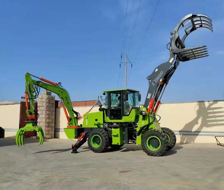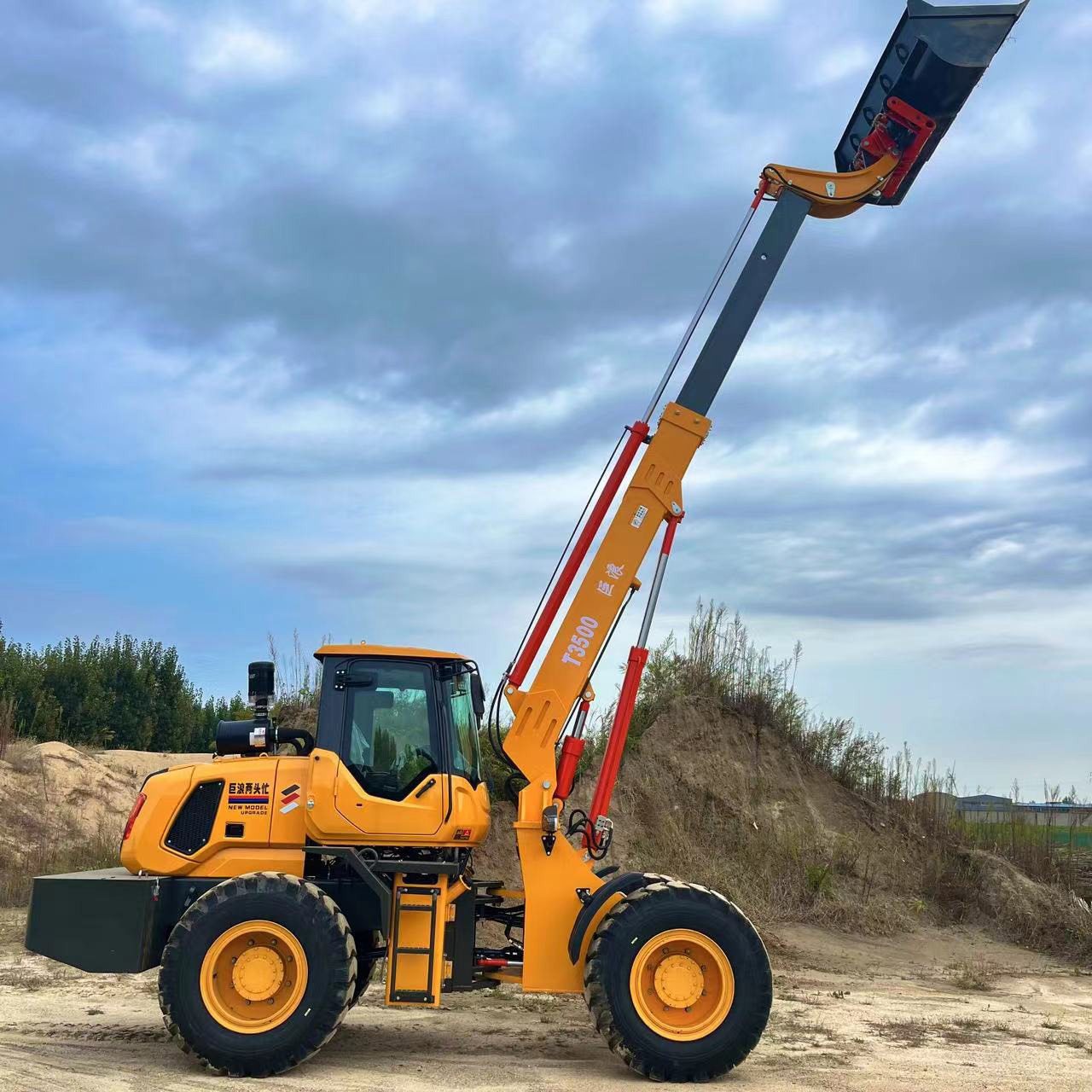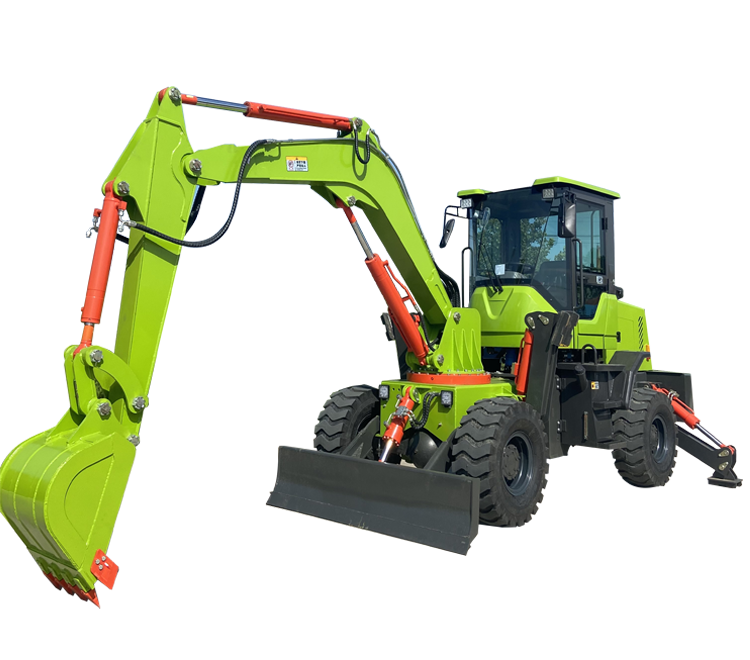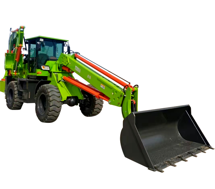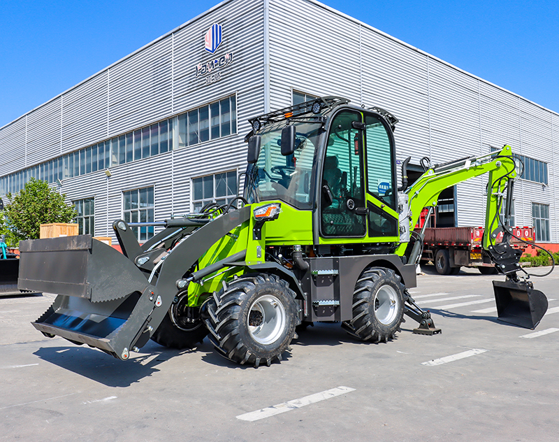 挖機部分,斗容0.3立方,最大伸縮挖掘深度5200,挖掘卸載高度5300,最大挖掘半徑7100,最大舉升高度7200,挖機回轉角度190°,可模擬人的手臂進行四聯式復合動作,操控柔和,動作流暢,微操作更精準,電控式主動側移,使工作面積大大增加,可選裝破碎錘、螺旋鉆等多種機具,滿足不同工況作業需求。